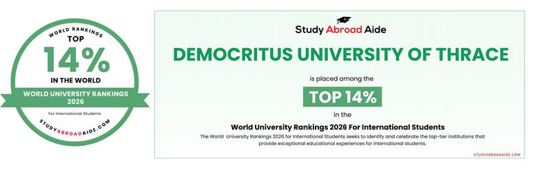 The “Study Abroad Aide (SAA) World Rankings for Best Value Universities for International Students” analyses 8.477 universities worldwide. Democritus University of Thrace is among the 14% of the best universities. “Study Abroad Aide” ranked all universities around the globe based on two metrics: affordability and academic reputation.